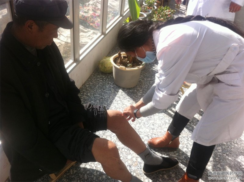 为关爱山区群众卫生健康,弘扬藏医药文化事业,普及藏医药健康知识,贵德藏医院外治科主任痛却一行七人于2015年11月20—21日,赴贵德县常牧镇上岗察、新建坪等村,开展义诊活动。在义诊现场为前来就诊的群众检查病情并详细询问身体状况,耐心细致的分析病情,讲解卫生保健知识、饮食安全、合理用药及用药注意事项等卫生常识。逐个量血压、测血糖、测身高体重,开展艾灸、针灸、火罐等藏医外治特色治疗,让群众进一步认识和了解藏医药。